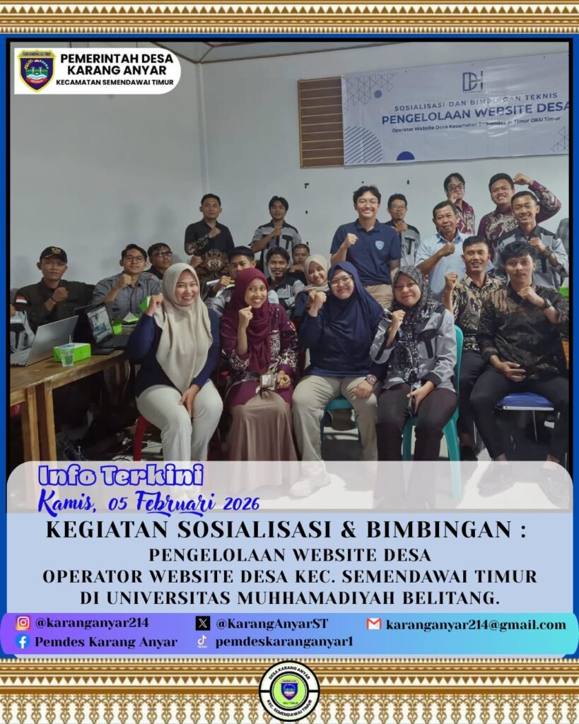 SEMENDAWAI TIMUR – Dalam upaya memperkuat keterbukaan informasi publik di tingkat desa, Operator Website Desa Karang Anyar menghadiri kegiatan Sosialisasi dan Bimbingan